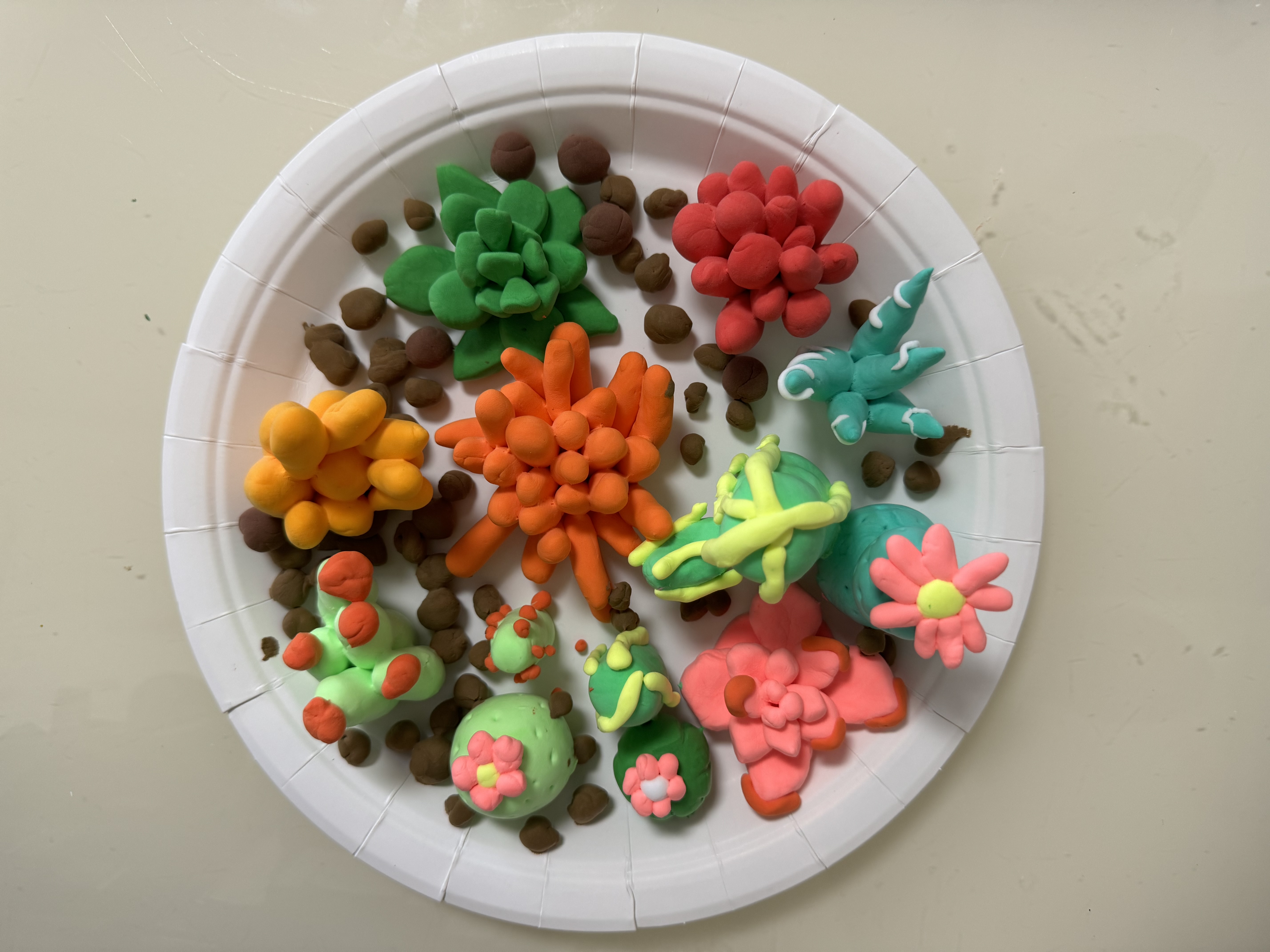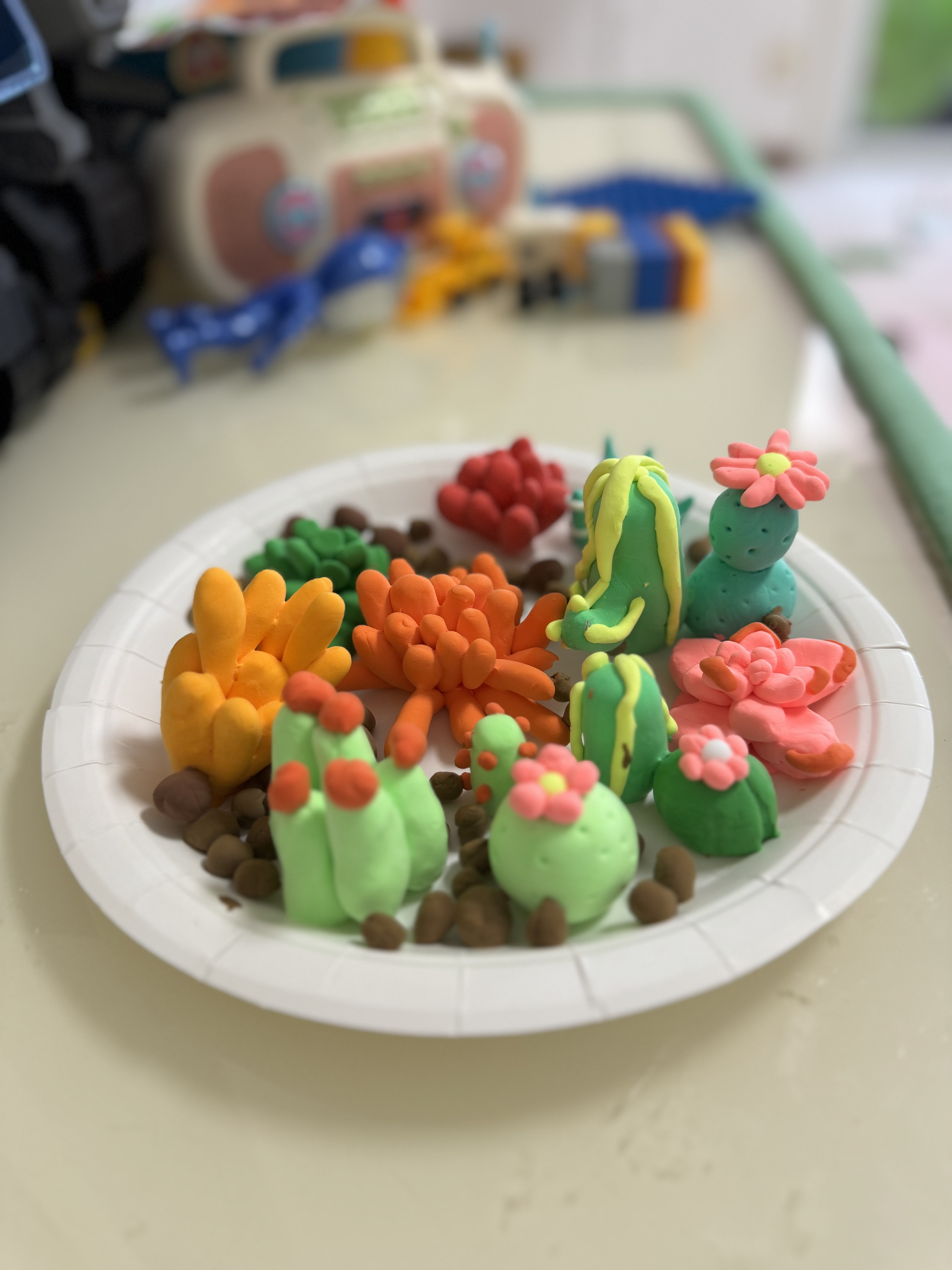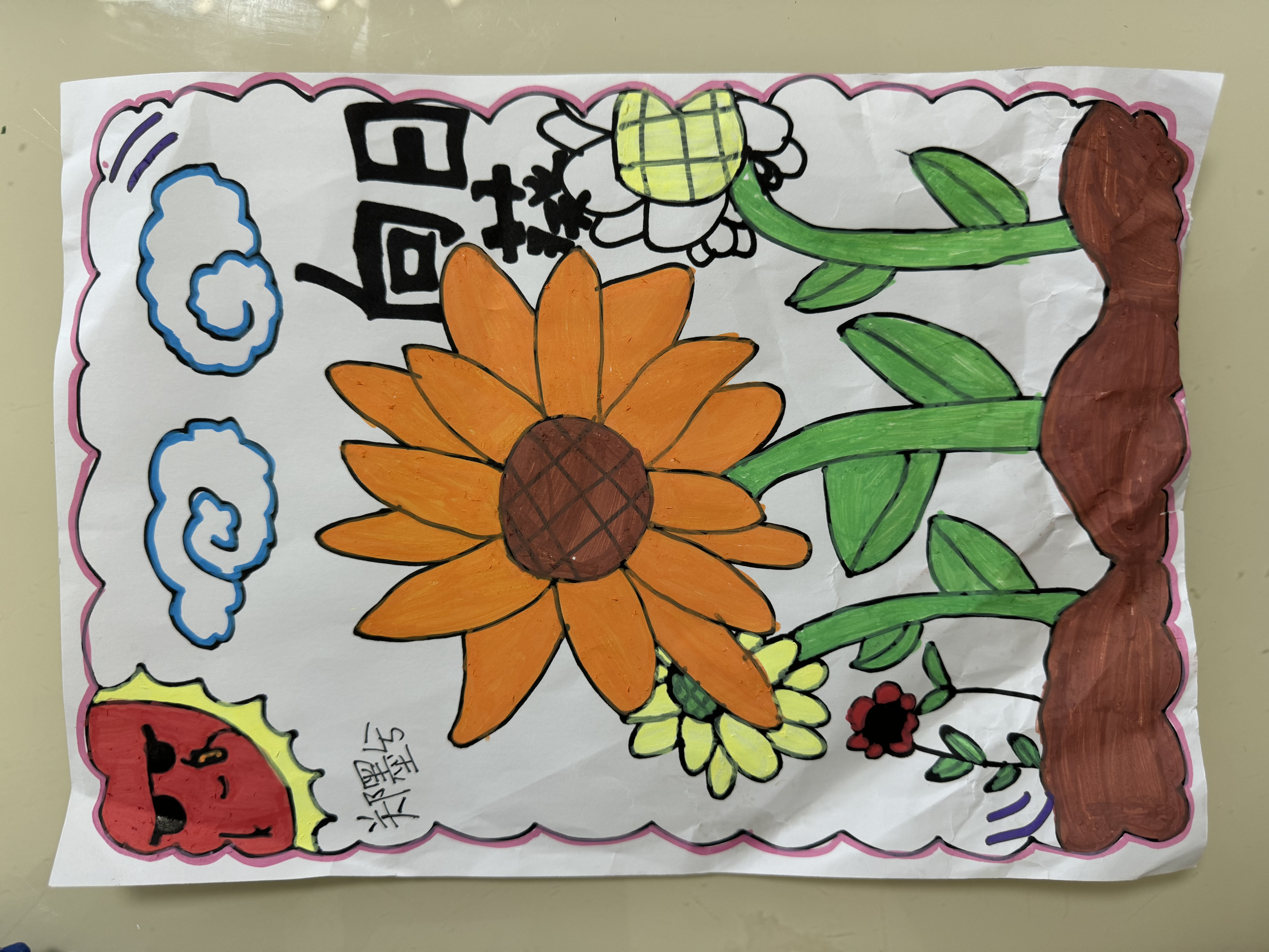女儿画的画和做的手工花盘。